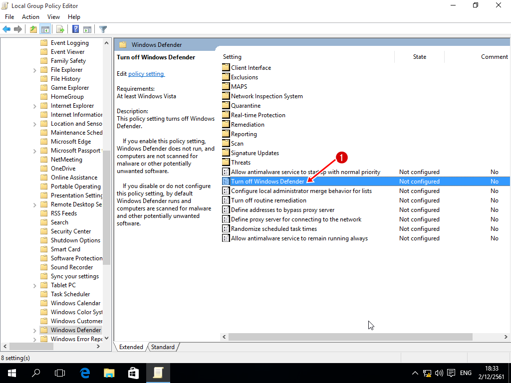 4. มองหาหัวข้อ Turn off Windows Defender แล้วคลิกเข้าไป