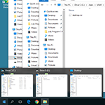แต่ถ้าเราเปิดโปรแกรมหรือโฟลเดอร์คล้ายๆกัน ระบบจะทำการยุบ Taskbar Button ที่เหมือนกันไว้เข้าด้วยกัน เวลาสลับการทำงานของโปรแกรมหรือโฟลเดอร์ เราก็ต้องมาเปิดดูทีละอันว่างานของเราอยู่ตรงไหน ซึ่งบางคนไม่ชอบวิธีการแบบนี้