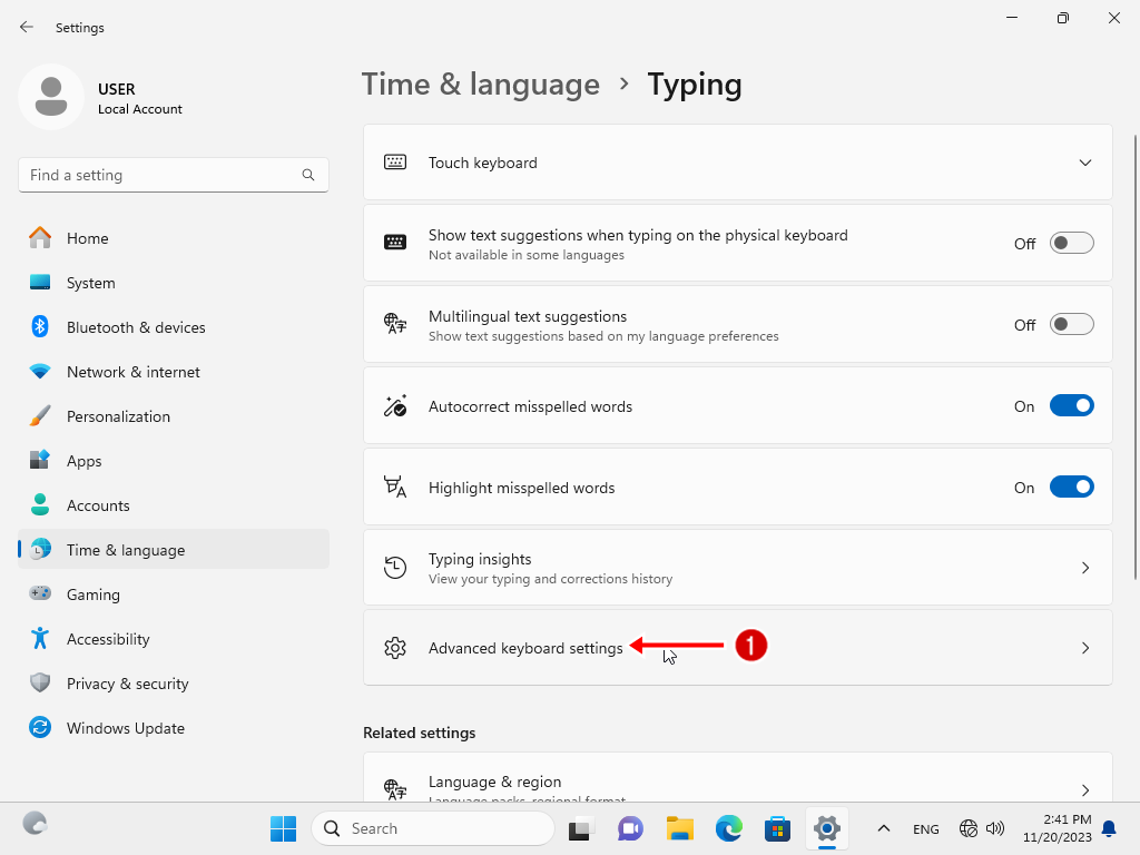 3.1 คลิกเข้าไปที่หัวข้อ Advanced keyboard settings