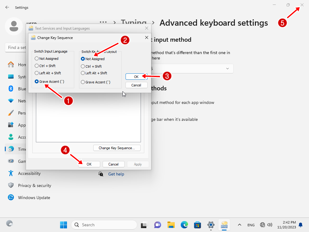 5.2 ดับเบิ้ลคลิกที่ Between input languages (ปกติตั้งเป็น Lieft Alt + Shift)