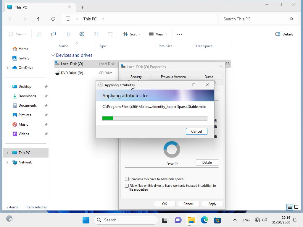 3.1 เอาเครื่องหมายออกจากหน้าหัวข้อ Allow files on this drive to have contents indexed in addition to file properties