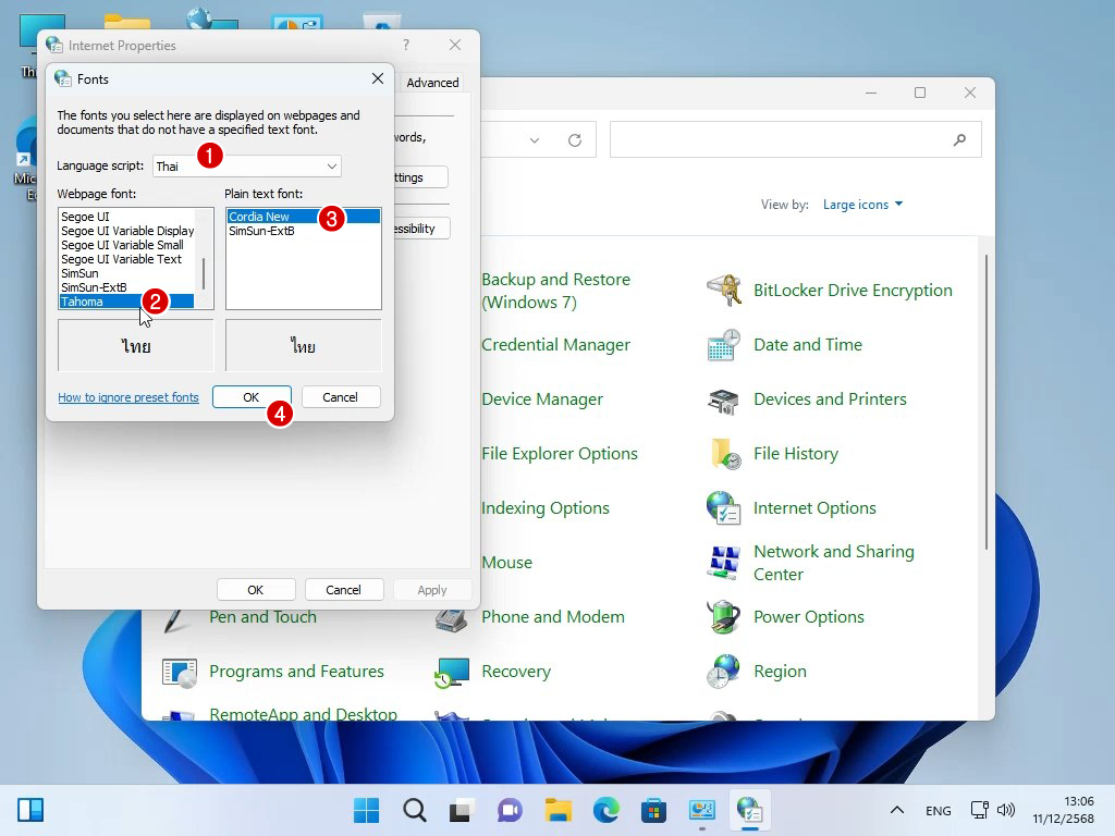 6.2 Webpage font (2) เลือกเป็น Tahoma จะได้ตัวหนังสือสวยที่สุด