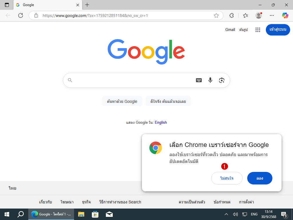 13.1 อาจจะมีโฆษณาให้ติดตั้ง Chrome ให้เราคลิกที่ "ไม่สนใจ"
