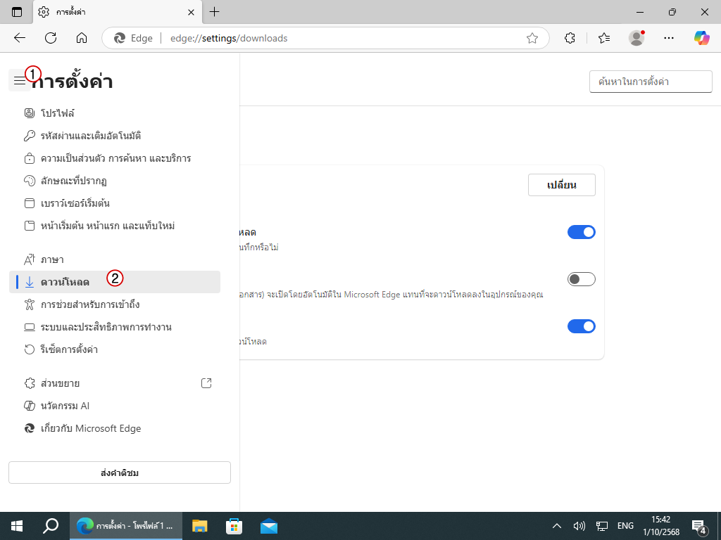 - หลังจากดาวน์โหลดเสร็จสิ้น ถ้า Edge มันเห็นว่าไฟล์ที่โหลดมาสามารถโชว์ได้ มันก็จะเปิดโชว์เองเลย บางคนอาจจะชอบ แต่ส่วนตัวผมเลือกที่จะปิดไว้