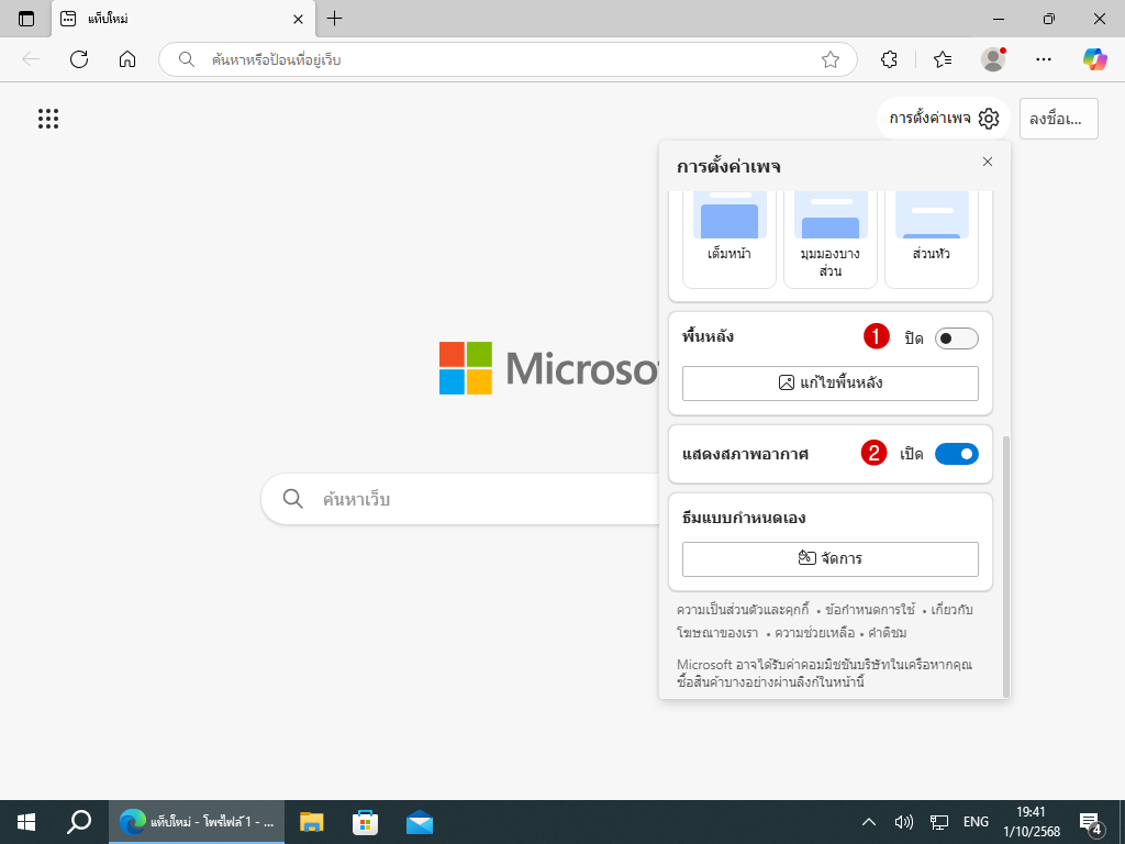 8. เมื่อเราเลือกปิด "การแสดงสภาพอากาศ" มันก็จะหายไป