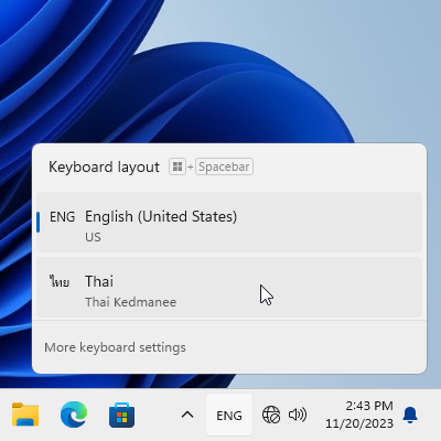 หลังจากที่เราติดตั้ง Microsoft Windows 11 เสร็จ ระบบจะกำหนดปุ่มสำหรับสลับภาษาไทย-อังกฤษเป็น Alt+Shift ซึ่งผู้ใช้คนไทยส่วนใหญ่ไม่ค่อยถนัดใช้งานกัน คนไทยส่วนใหญ่นิยมใช้ปุ่มตัวหนอน(~)ที่ด้านซ้ายบนคีย์บอร์ดมากกว่า
