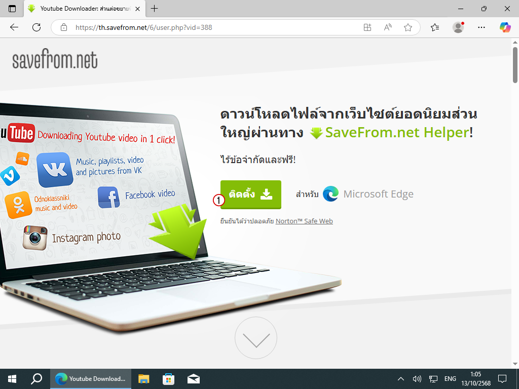 1. เริ่มต้นด้วยการเปิด Microsoft Edge แล้วเข้าเว็บ Savefrom.net