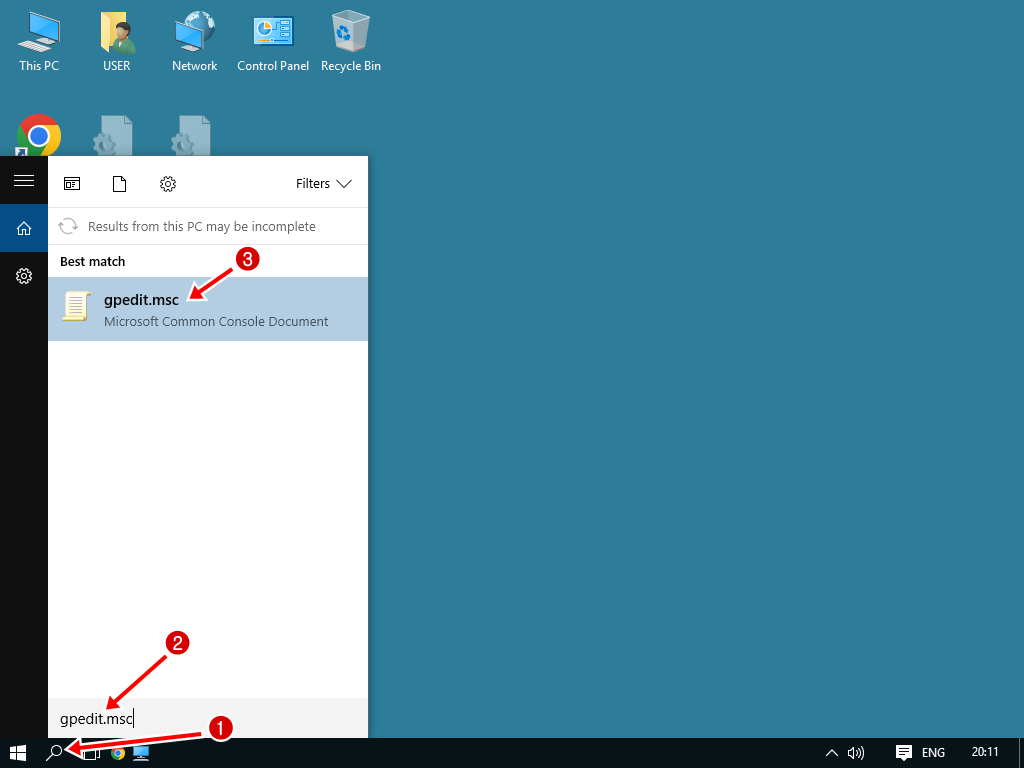 1.2 ในช่องค้นหา พิมพ์ GPEDIT.MSC