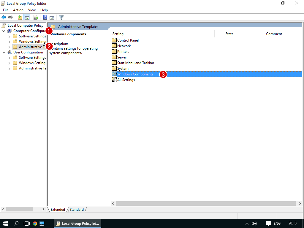 2. ในหน้าต่าง Local Group Policy Editor