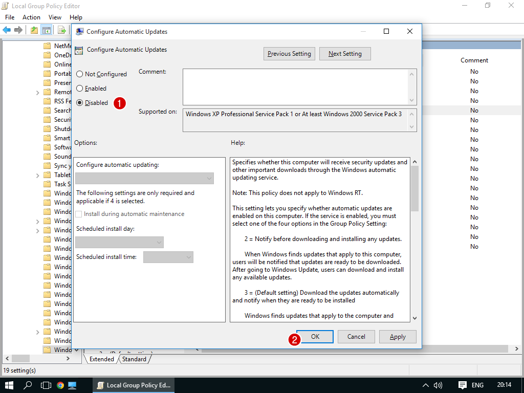 5. แก้ค่าสถานะของ Configure Automatic Updates
