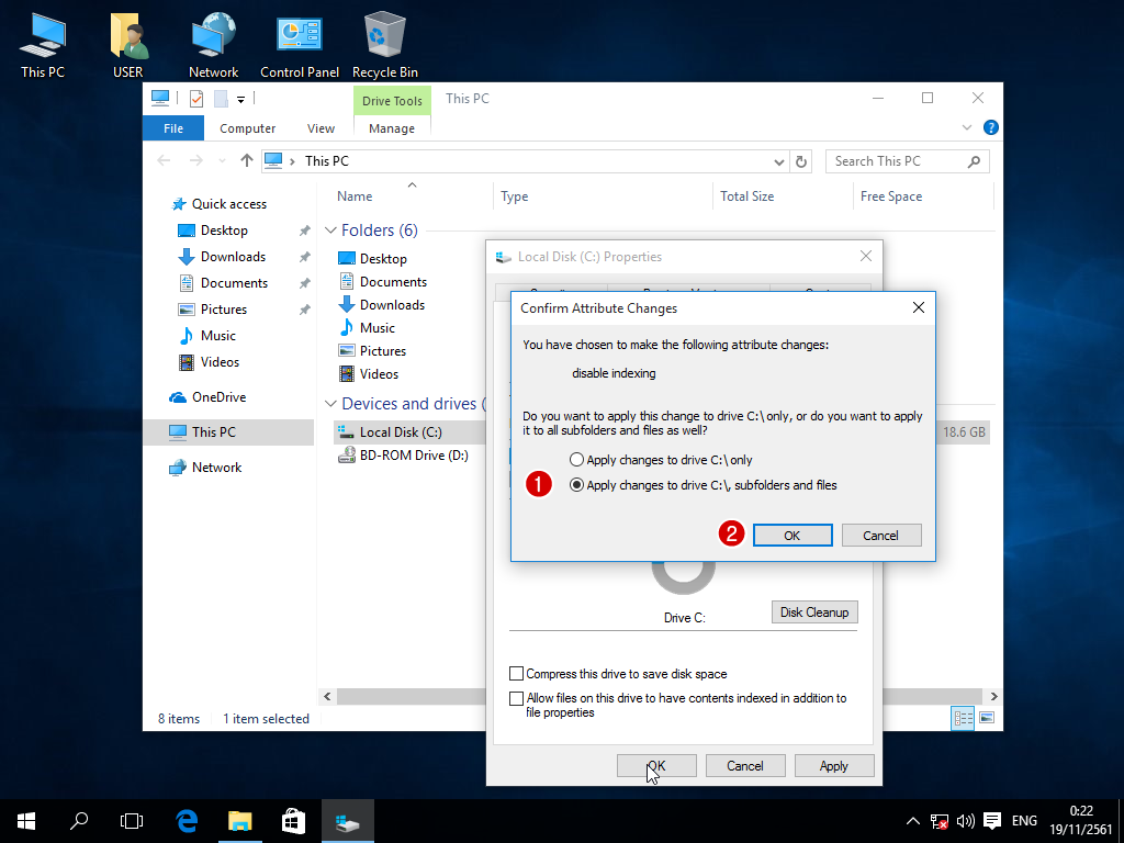 - แนะนำให้ทำการยกเลิก content index ของ drive อื่นๆจนครบทุก drive