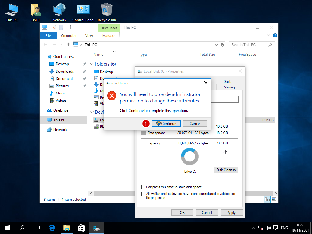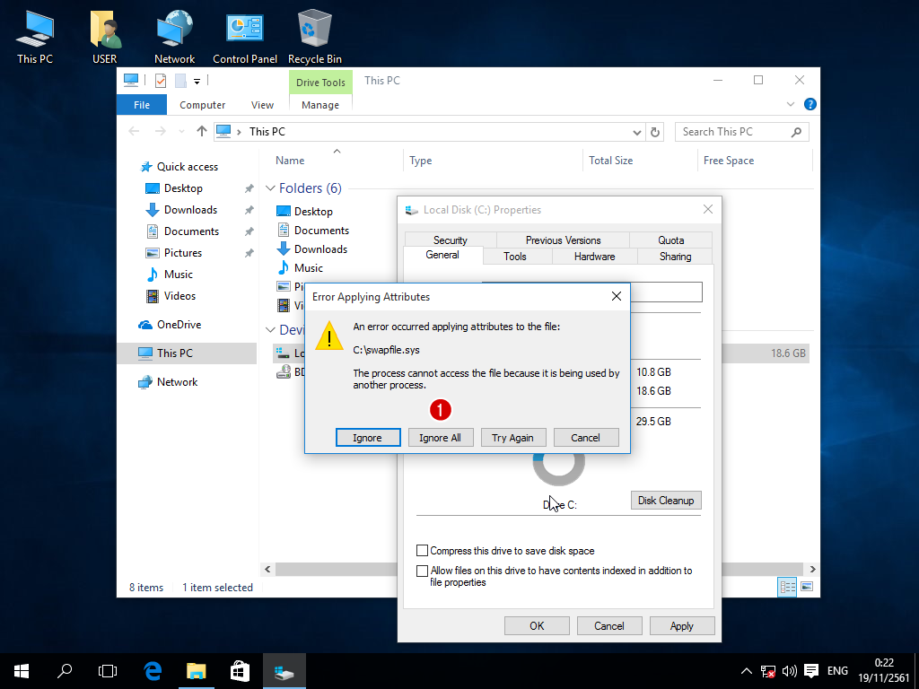 - ตามตัวอย่างนี้คือ ไม่สามารถเปลี่ยนแปลงคุณสมบัติของไฟล์ C:\swapfile.sys เนื่องจากไฟล์นี้ถูกเปิดใช้งานอยู่