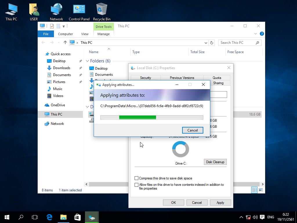 8. เมื่อยกเลิก content index เสร็จเรียบร้อยแล้ว หน้าต่างการทำงานจะหายไป