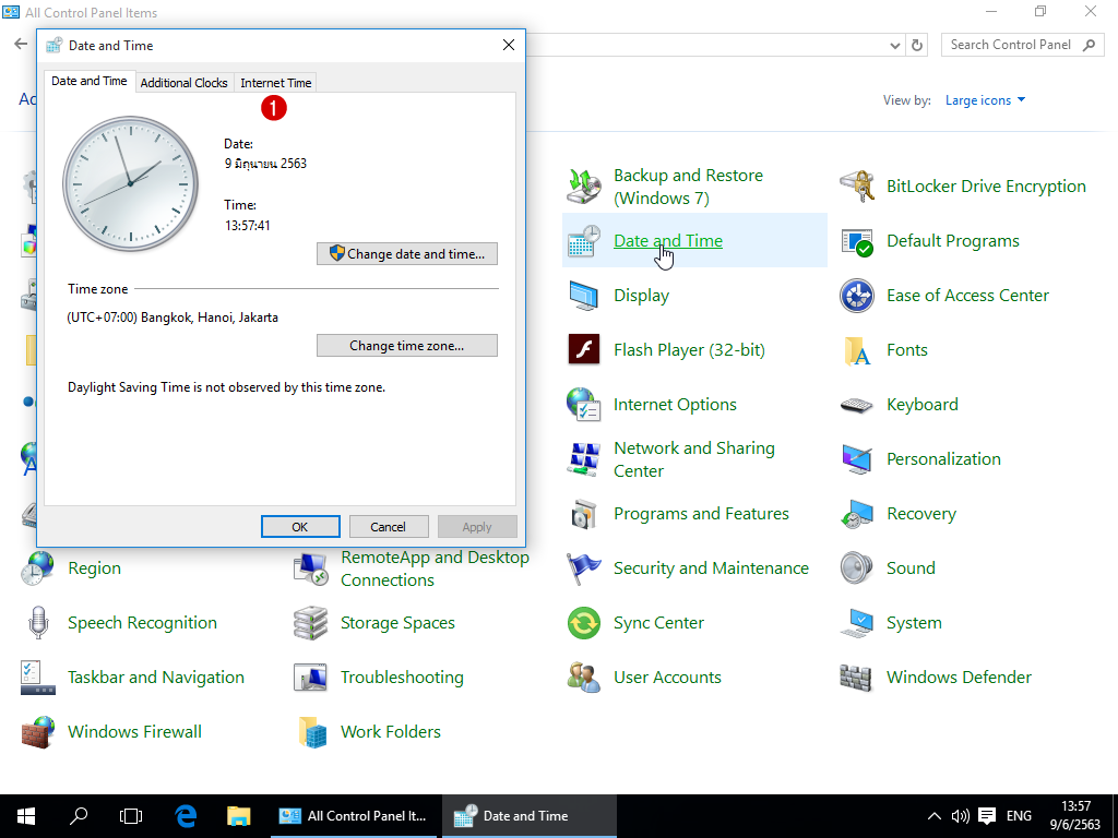 6.8 คลิกปุ่ม OK อีกครั้ง เพื่อปิดหน้าต่าง Date and Time