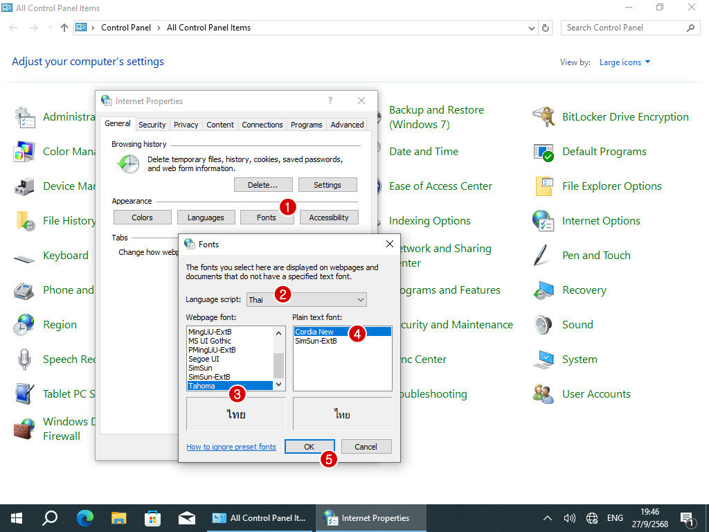 3.1 ในแท็บ General ให้คลิกปุ่ม Fonts