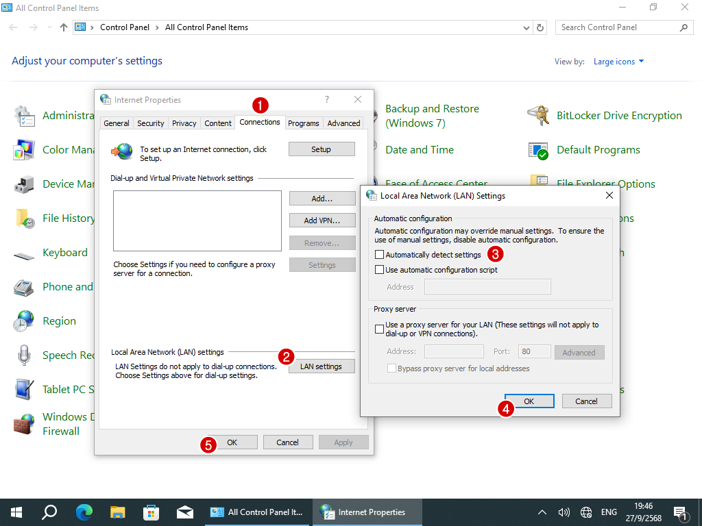 4.3 เอาเครื่องหมายออกจาก Automatic detect settings (จริงๆคือเอาเครื่องหมายออกหมดเลย)