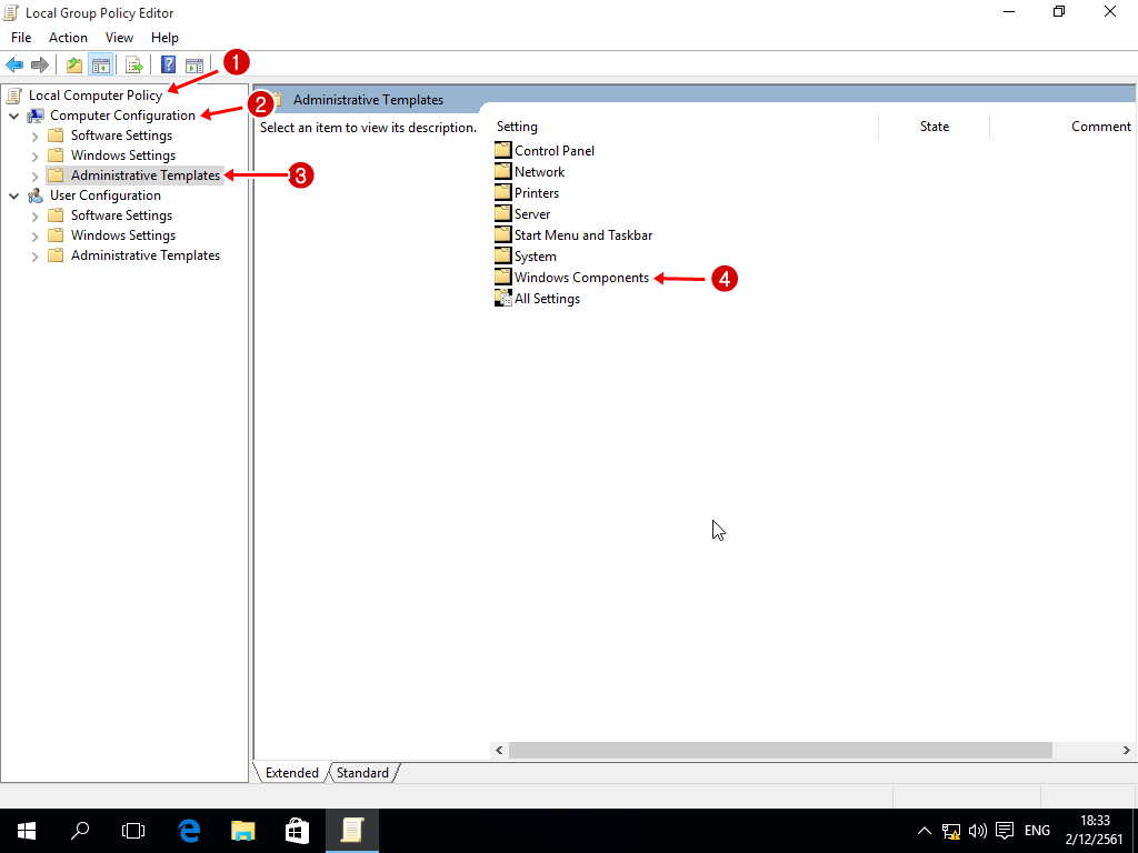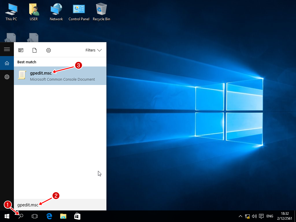 1.2 พิมพ์ข้อความ GPEDIT.MSC ในช่องค้นหา