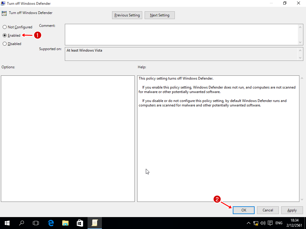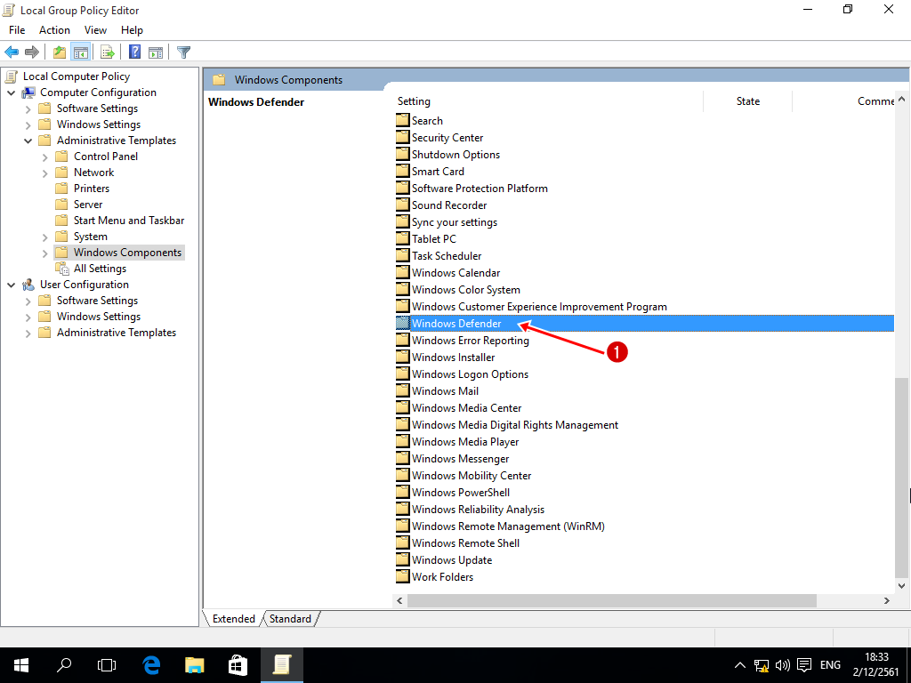 4. มองหาหัวข้อ Turn off Windows Defender แล้วคลิกเข้าไป
