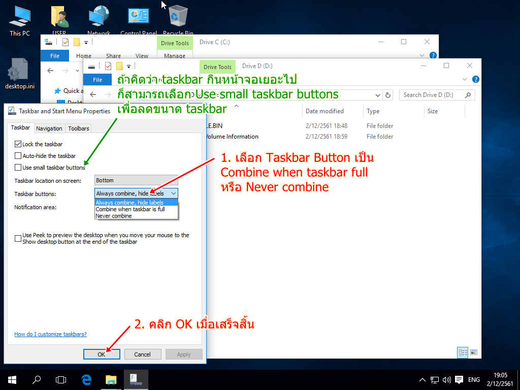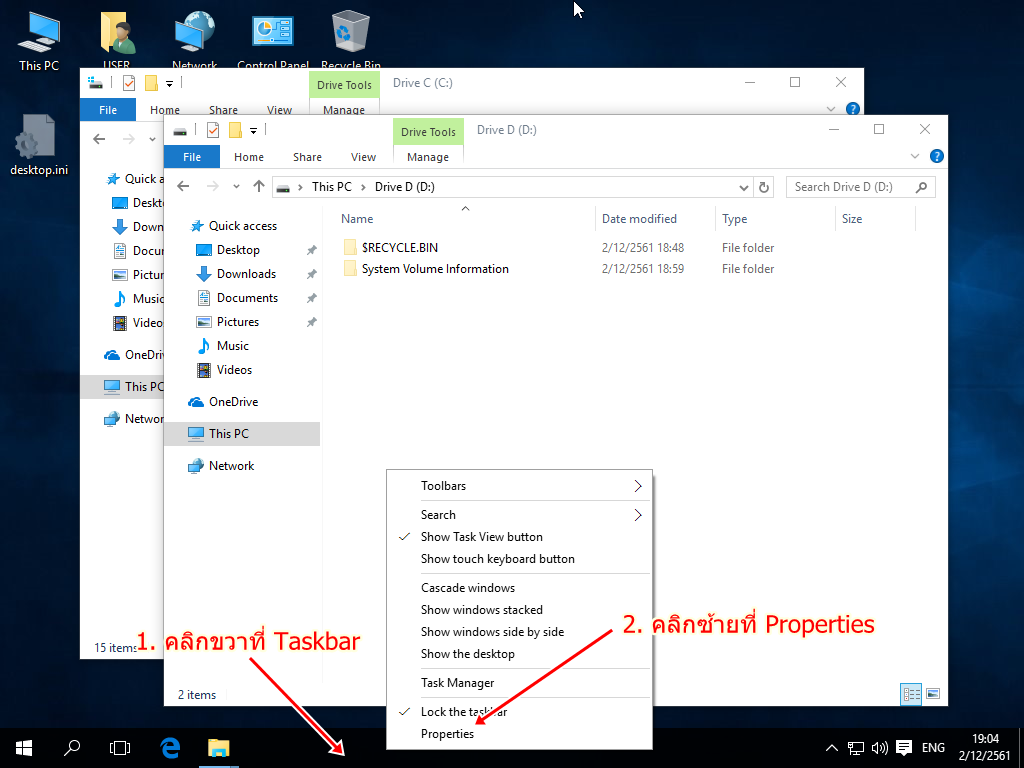 1. เปิด Taskbar Properties ขึ้นมาก่อน