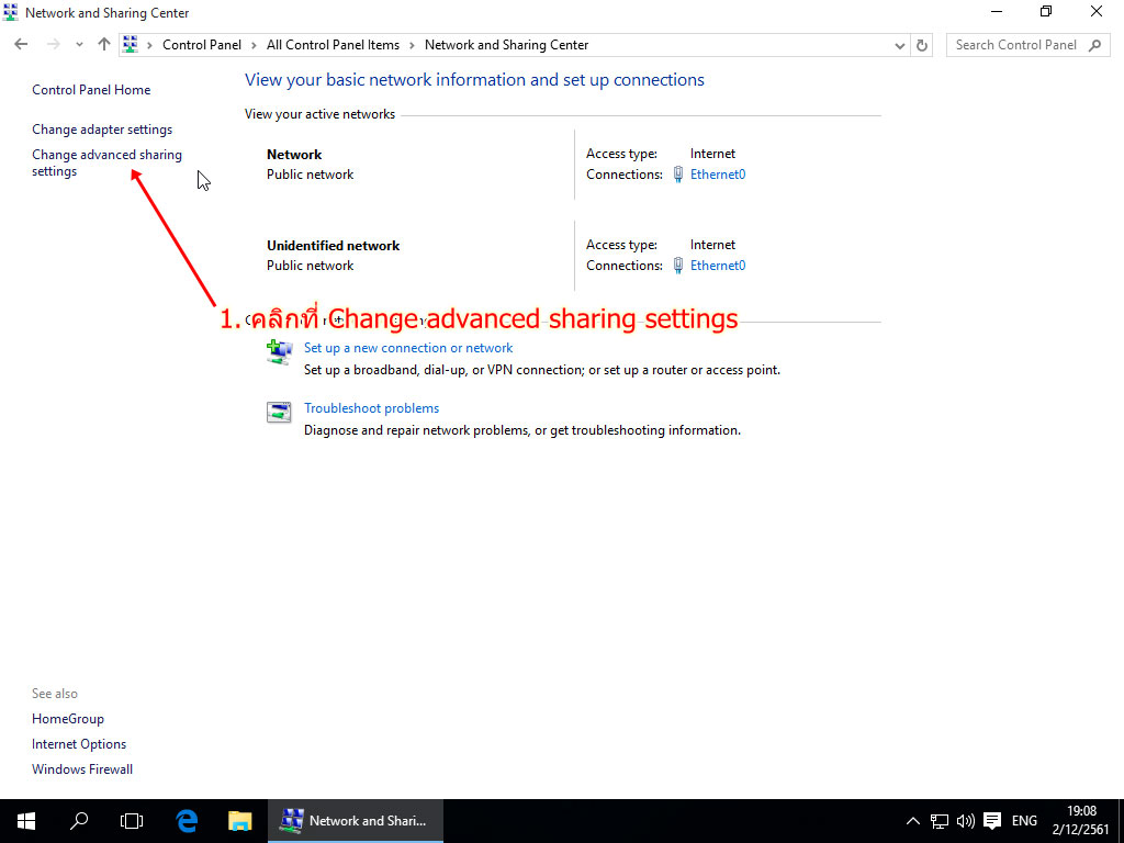2. เปิดเข้า Network and Sharing Center