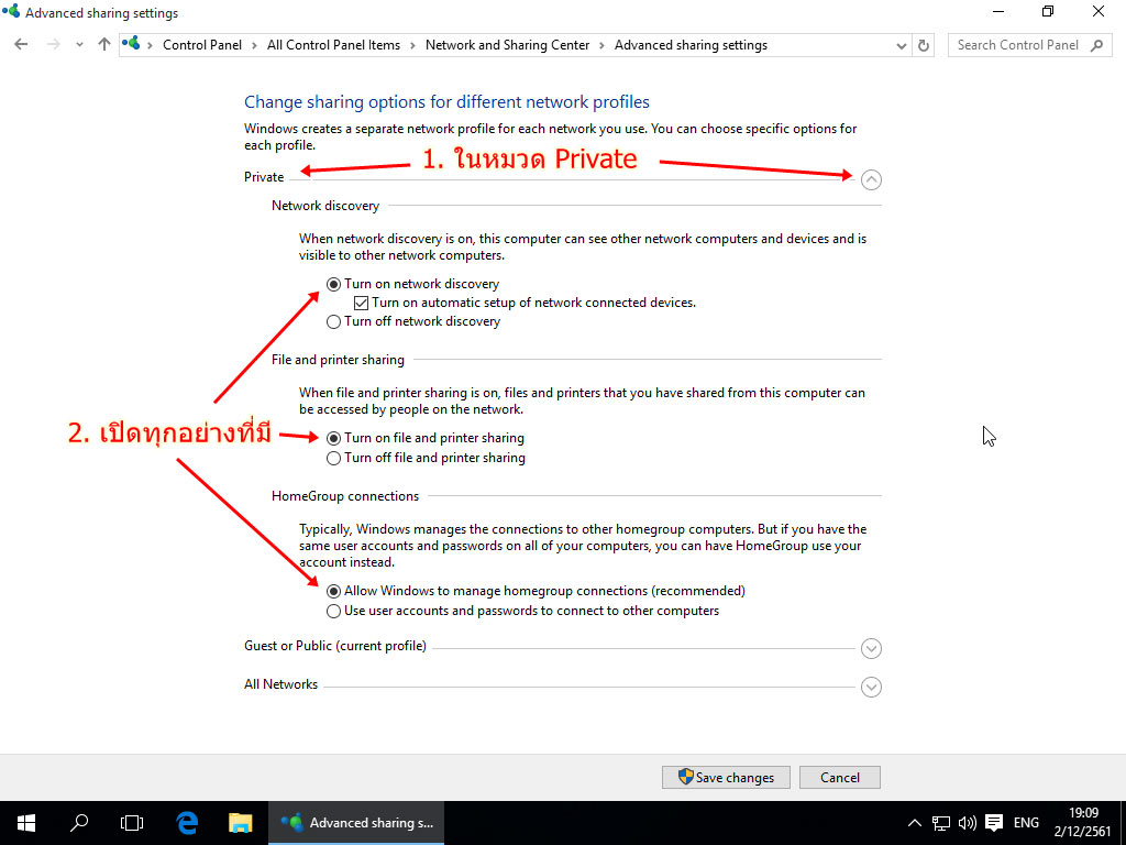 5. ในหมวด Guest or Public ก็ให้เปิดทุกอย่างเหมือนกัน