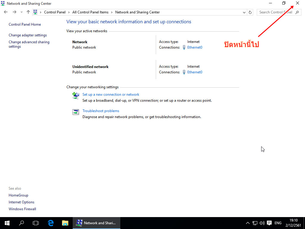 7. เมื่อกลับมาหน้า Network and Sharing Center อีกครั้งก็น่าจะหมายความว่าเสร็จแล้ว สามารถปิดไปได้