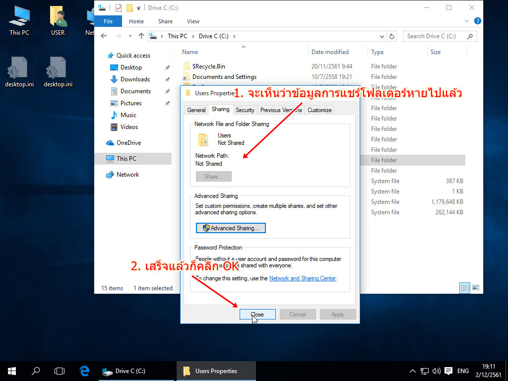 - แต่ในความเป็นจริง Microsoft Windows 10 มันจะปิดแชร์ในโฟลเดอร์ผู้ใช้โดยเราไม่ได้สั่ง