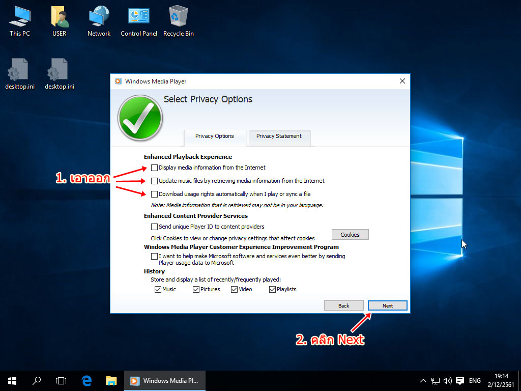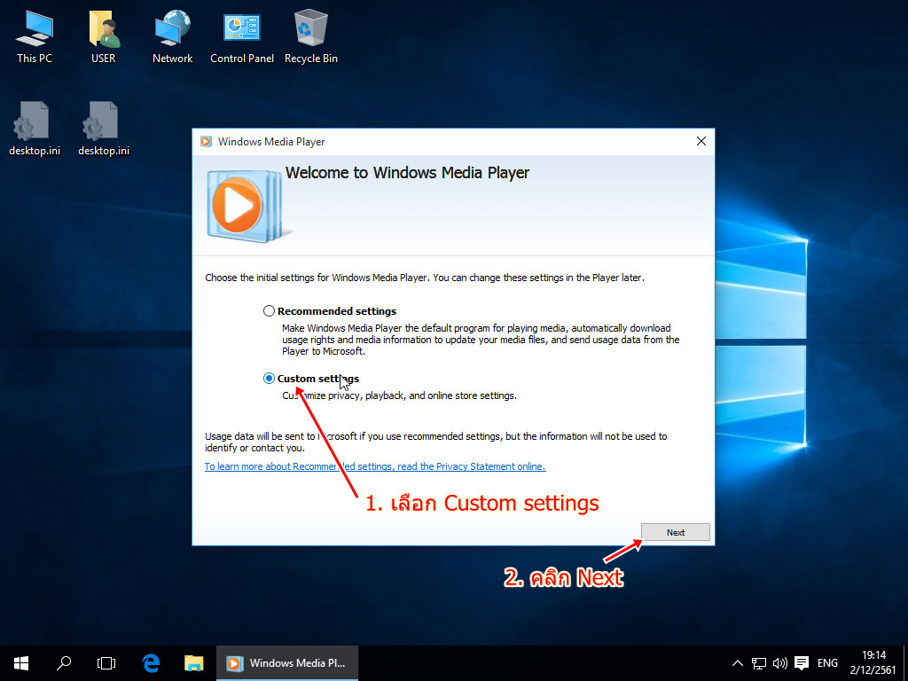 2. ถ้าคุณเปิดเรียกใช้ Windows Media Player เป็นครั้งแรก มันจะพาไปหน้า Welcome to Windows Media Player