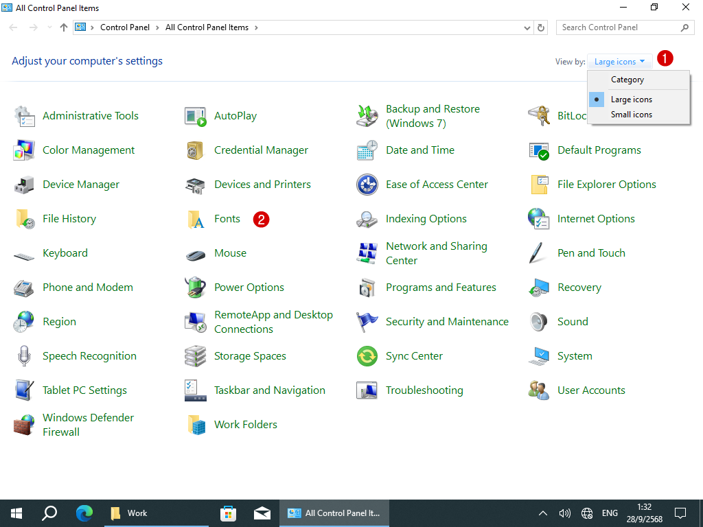 3.1 ถ้า Control Panel ตั้งไว้เป็นแบบ Category ให้เปลี่ยนเป็น Large Icons เสียก่อน