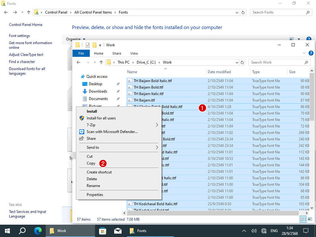 4.1 เลือกฟอนต์ที่เราต้องการติดตั้ง แล้วคลิกขวา