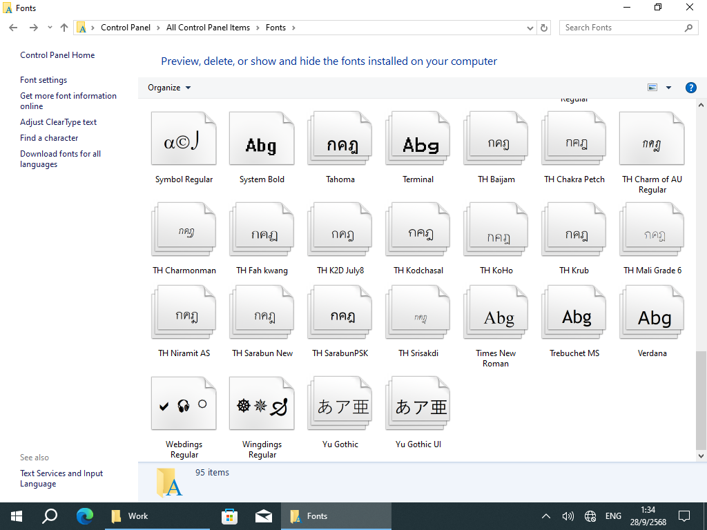 ถึงแม้ว่า Microsoft Windows 10 ได้ติดตั้งฟอนต์มาให้ผู้ใช้จำนวนหนึ่งแล้ว แต่น่าเสียดายที่ฟอนต์ที่ติดตั้งมาส่วนใหญ่ไม่มีภาษาไทย ส่วนฟอนต์ที่มีภาษาไทยเป็นฟอนต์ที่ค่อนข้างธรรมดา ไม่เหมาะที่จะนำมาใช้ทำกราฟฟิคสวยๆ