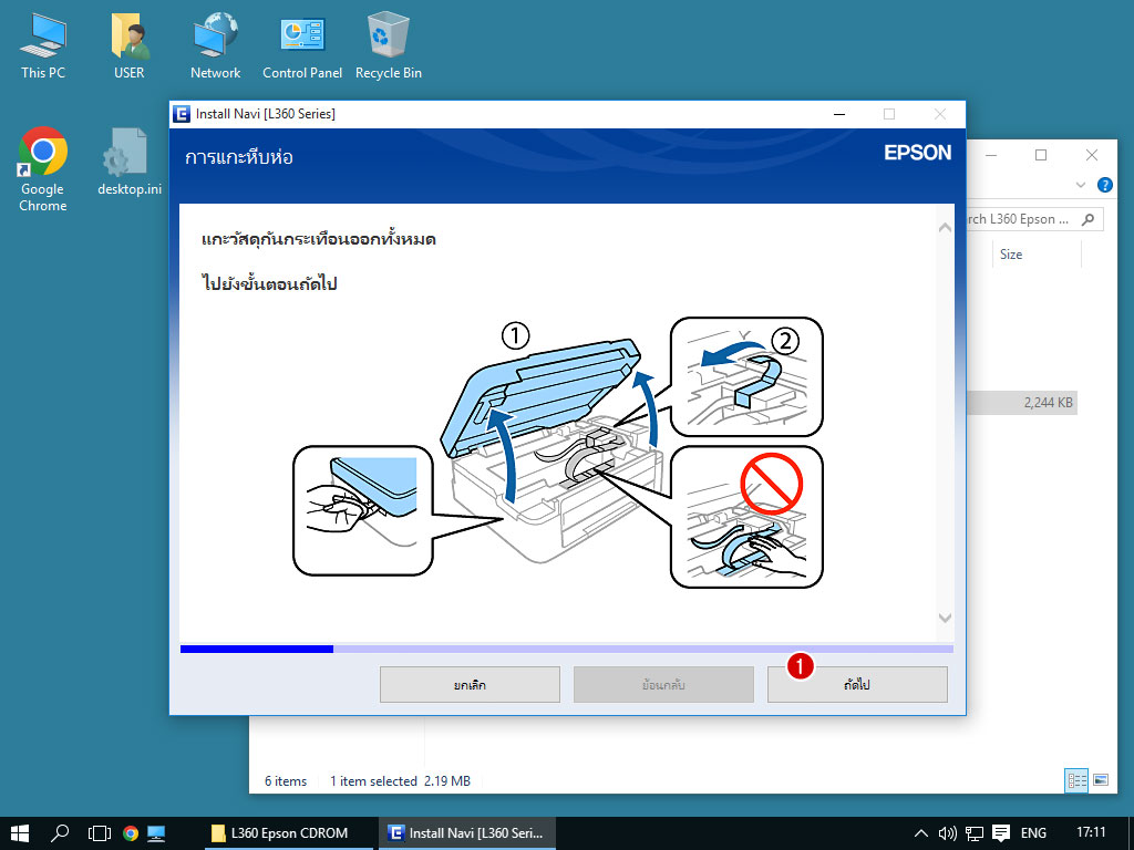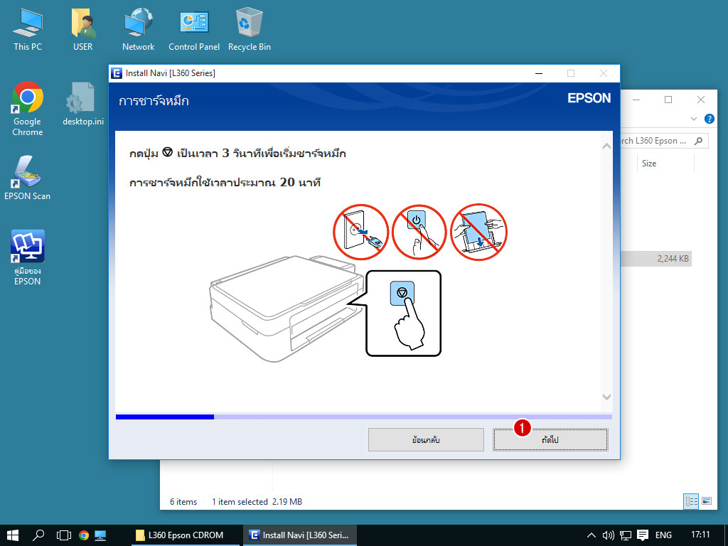 1.1 ถ้ามีแผ่น CDROM ที่แถมมาพร้อมพริ้นเตอร์ ก็ให้ใส่ลงในคอมพิวเตอร์ ไฟล์ติดตั้งจะมีชื่อว่า InstallNavi.exe