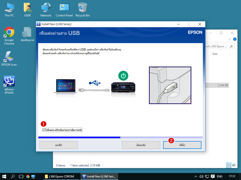สำหรับคนที่ทำเครื่องหมายที่ "เชื่อมต่อเครื่องพิมพ์ของท่านในภายหลัง" อาจจะยังมองไม่เห็นพริ้นเตอร์
