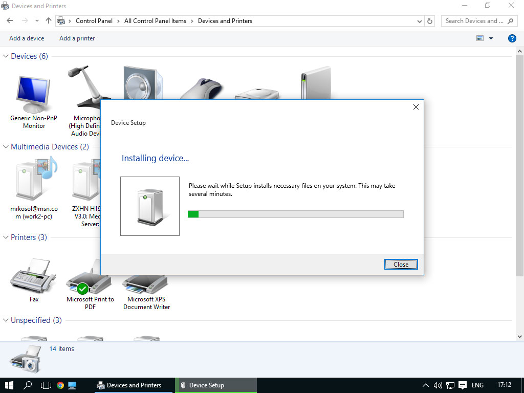 10. เมื่อเราเสียบสาย USB และเปิดสวิทซ์ของพริ้นเตอร์ให้เริ่มทำงาน คอมพิวเตอร์ก็จะเริ่มทำความรู้จักกับพริ้นเตอร์โดยอัตโนมัติ