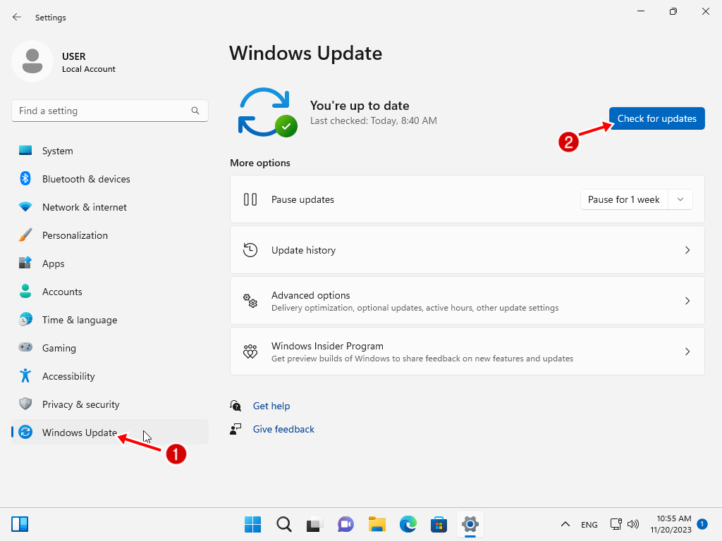 3.1 เมนูด้านซ้าย คลิกปุ่ม Windows Update