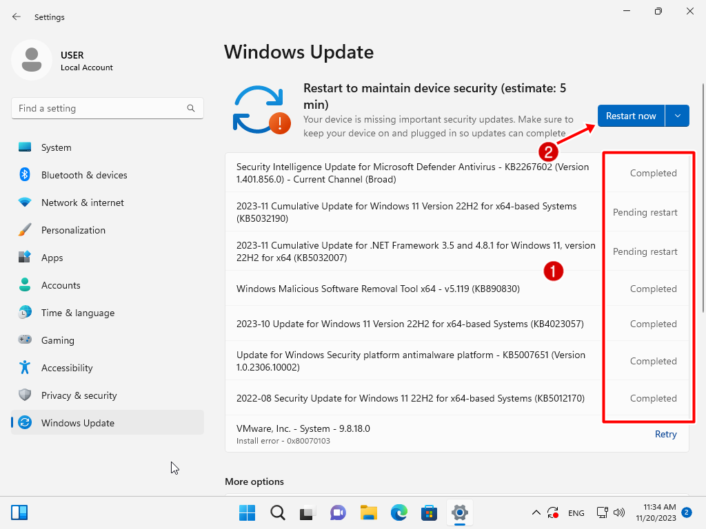 5.2 เราสามารถกด Restart now ได้โดยไม่ต้องรอให้อัพเดทครบหมดทุกตัว แต่ไม่แนะนำ ควรรอให้ดาวน์โหลดครบก่อนดีกว่า