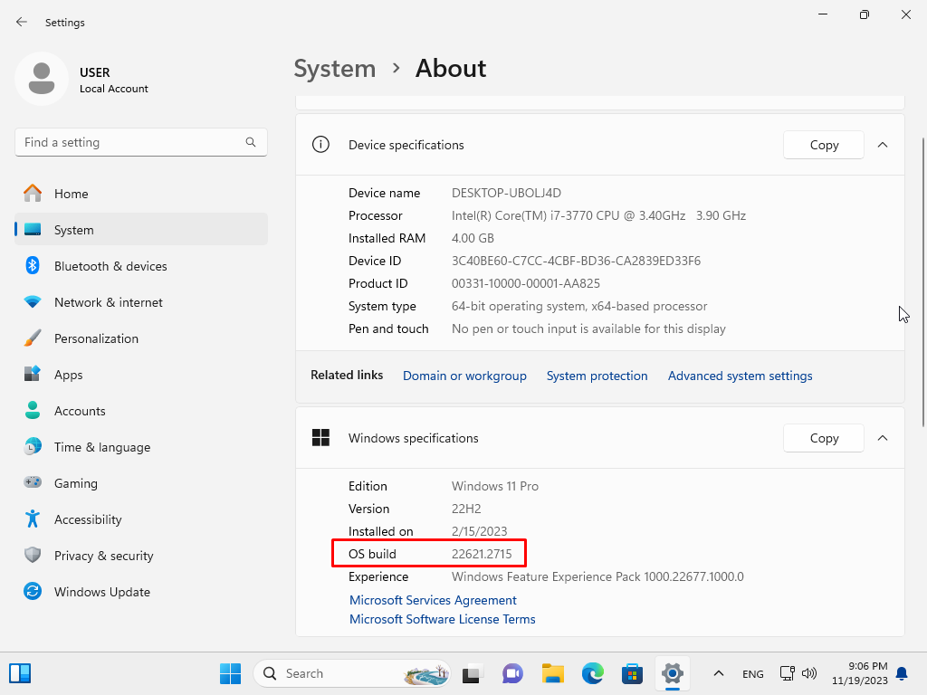 7. สำหรับ Windows ที่ใช้เป็นภาพตัวอย่างในบทความนี้ หลังจากอัพเดทเสร็จเรียบร้อย ก็จะกลายเป็น Build 22621.2715