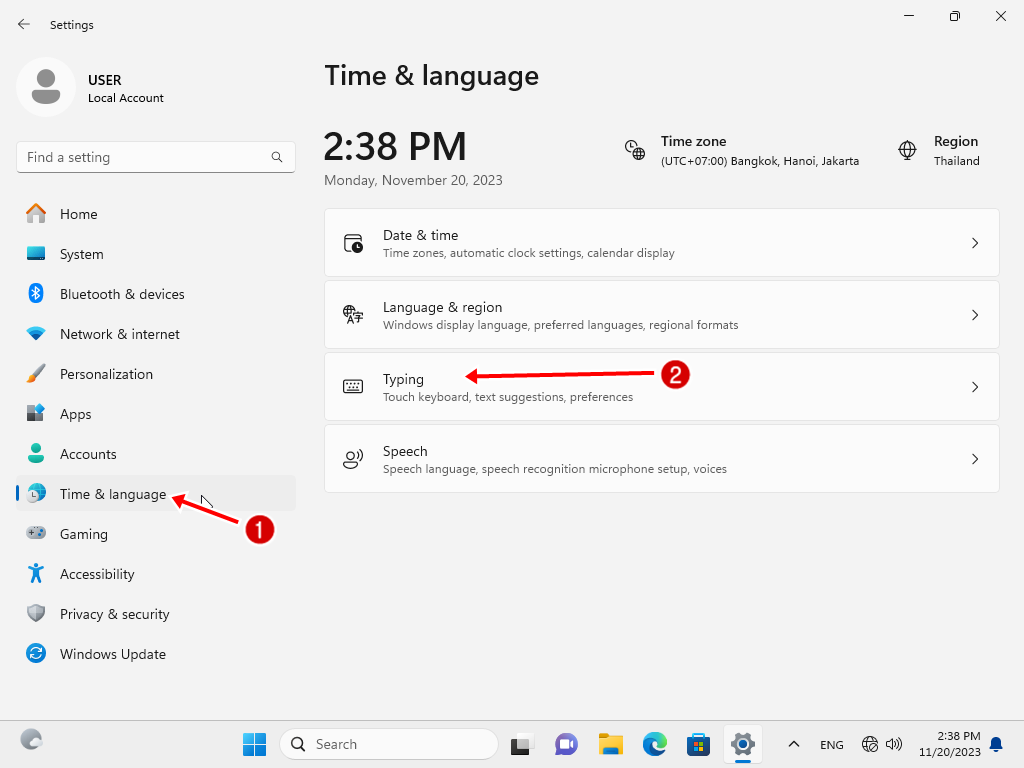 3. อยู่ในหน้าจอ Time & Language > Typing