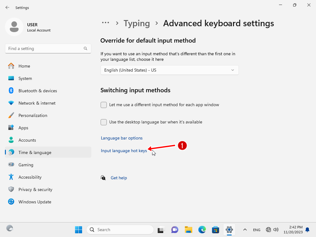 4. คลิกเข้าไปที่หัวข้อ Input language hot keys