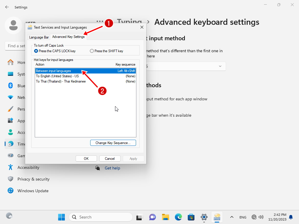 5.2 ดับเบิ้ลคลิกที่ Between input languages (ปกติตั้งเป็น Lieft Alt + Shift)