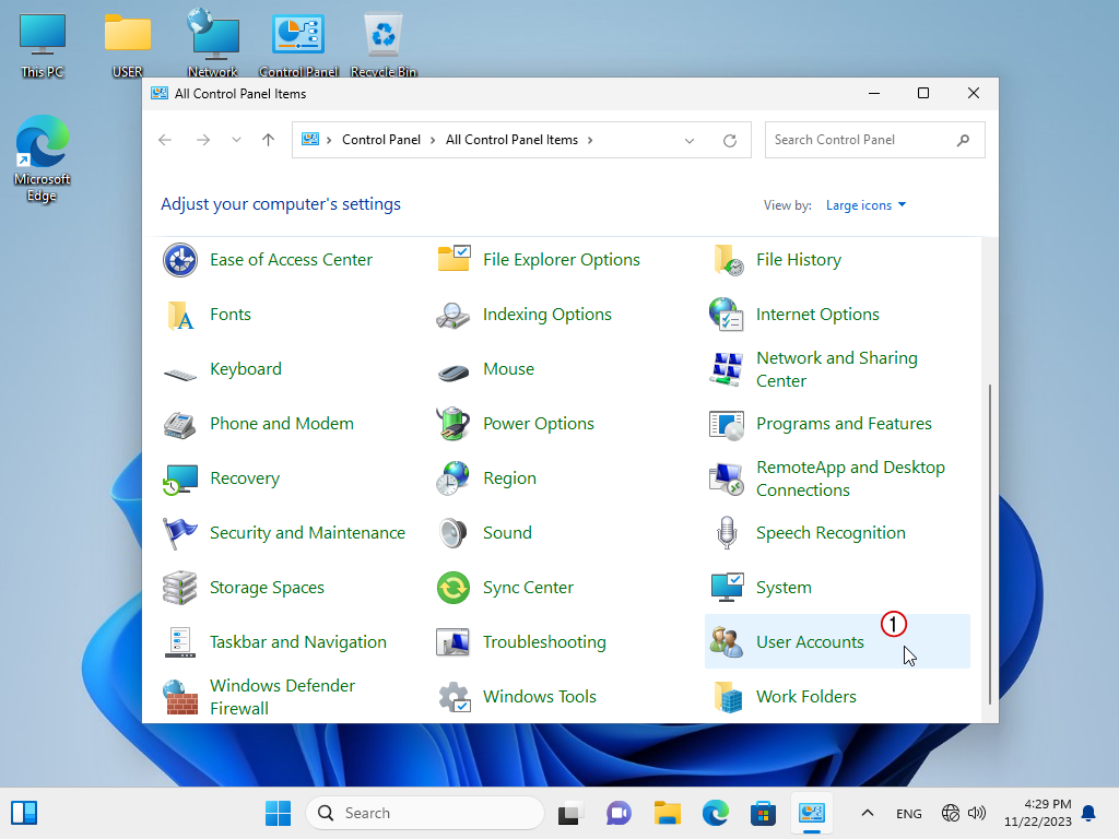 2. เมื่อเปิดหน้า Control Panel เข้ามาแล้ว ให้คลิกเรียกใช้ User Accounts