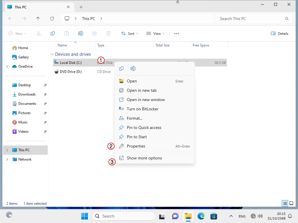 2.1 คลิกขวาที่ Drive ที่เราจะจัดการ ในที่นี้คือ Drive C: