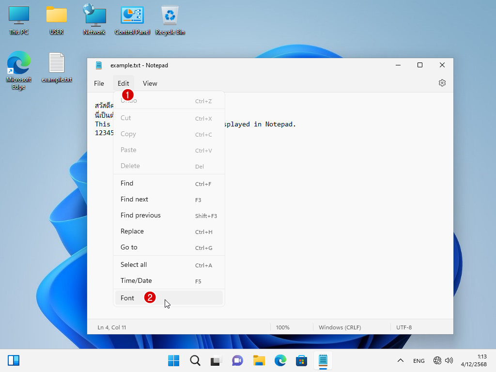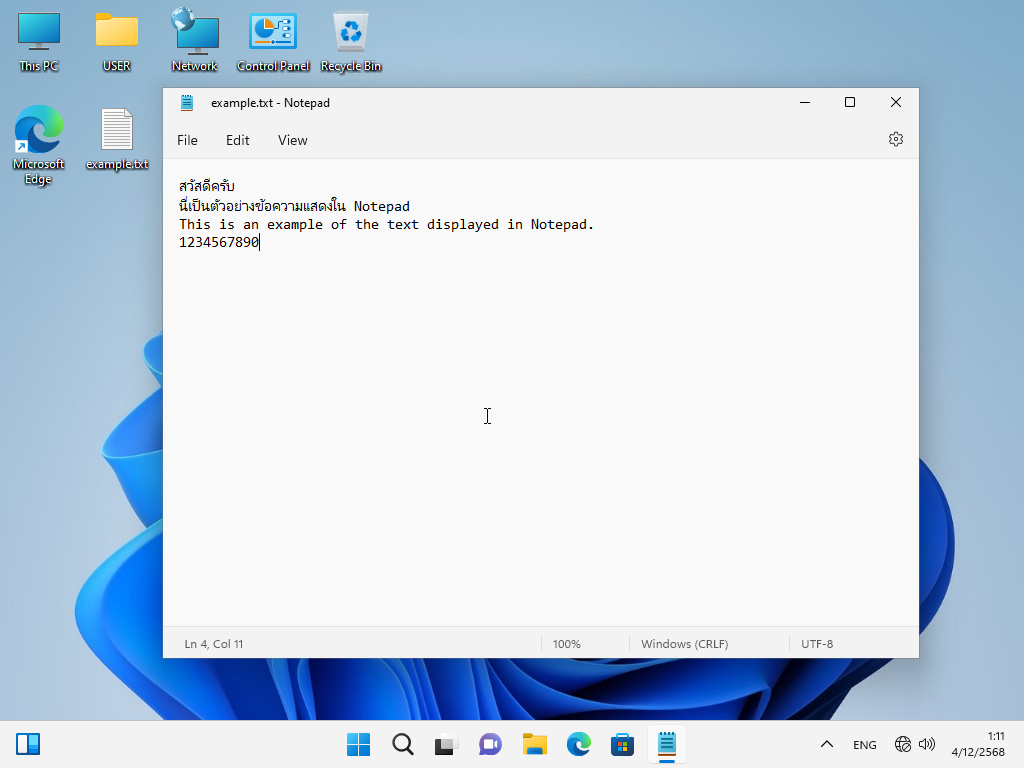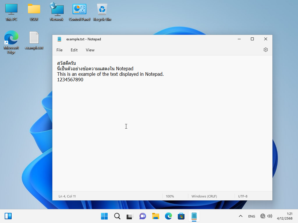 2. พิมพ์อะไรซักอย่างใน Notepad เพื่อจะได้สังเกตุตัวอักษรที่เปลี่ยนไป
