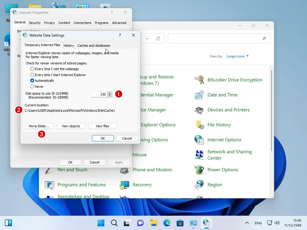 8.3 เราสามารถย้ายตำแหน่งที่เก็บไฟล์ขยะไปไว้ที่อื่นได้ โดยการคลิกที่ปุ่ม Move folder (3)
