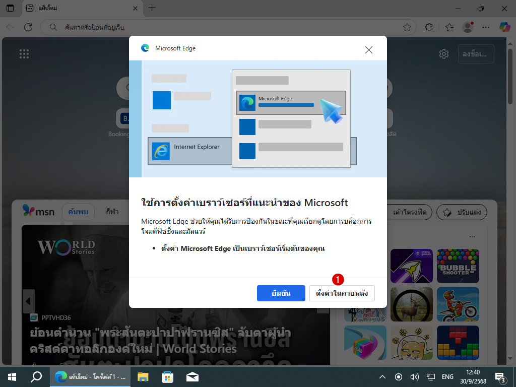 2. ตอนเปิดใหม่ อาจจะมีการแนะนำให้ตั้งค่า Microsoft Edge เป็น Web Browser หลัก