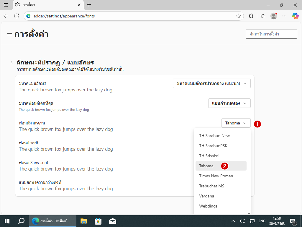 8. แนะนำให้แก้ฟอนต์มาตรฐานเป็น "Tahoma" จะได้ตัวอักษรที่สวยที่สุด