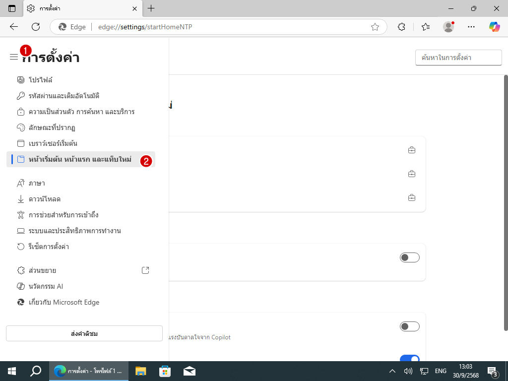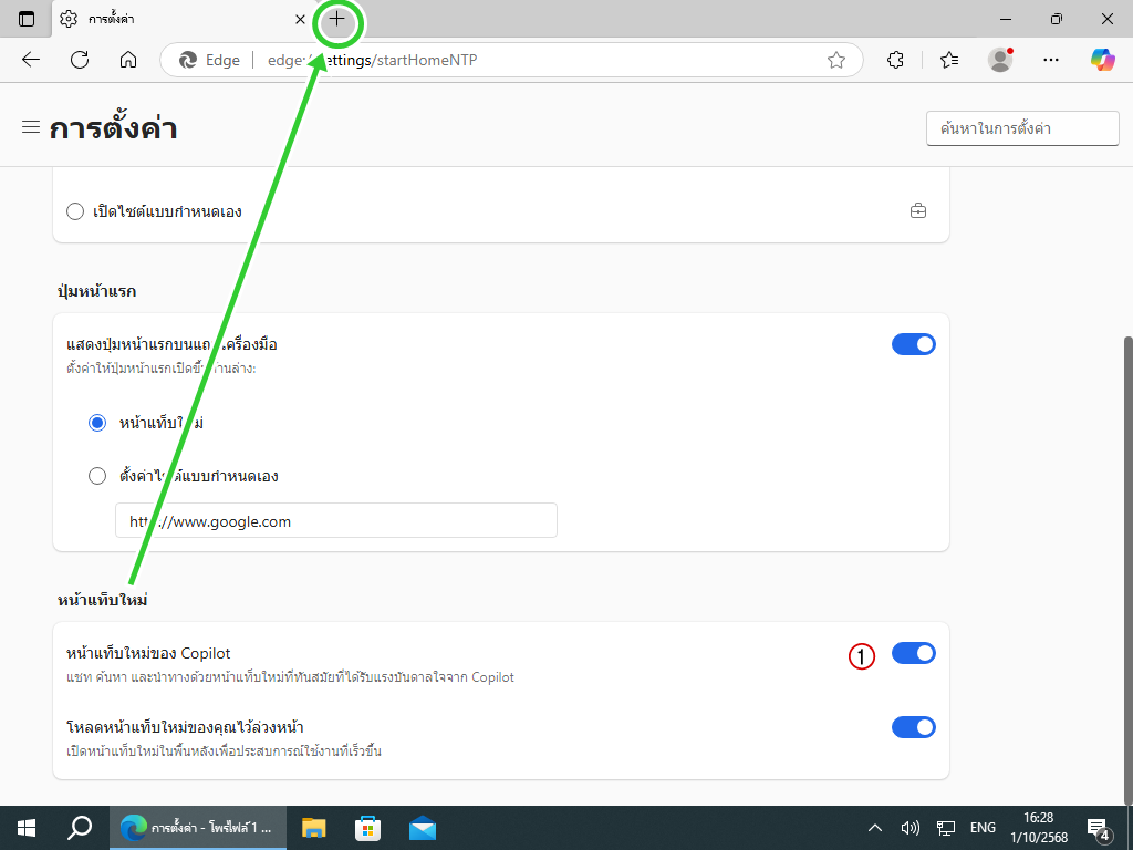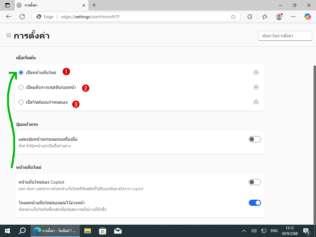 10. เรากำลังจะตั้งค่าหน้าแรกเมื่อเปิดใช้งาน Edge