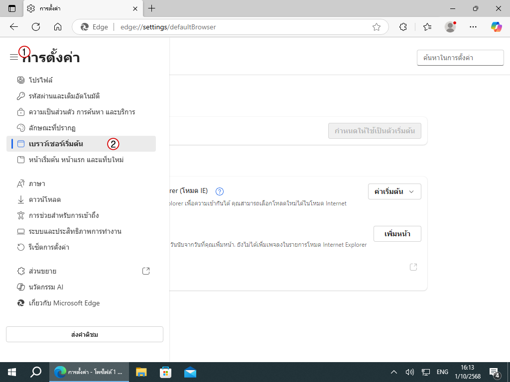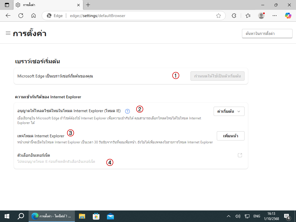 - ถ้ากำหนดให้ใช้เป็นตัวเริ่มต้น เวลาเราคลิก Link จากที่อื่น (เช่น LinePC) มันจะเปิด Edge ขึ้นมาก่อน