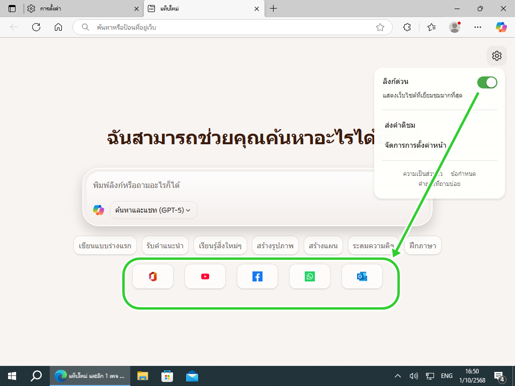 - ตัวเลือกก็มีแค่ลิงก์ด่วน จะปิดหรือจะเปิดก็แล้วแต่ละคนสะดวก แต่ส่วนตัวผมเลือกปิด