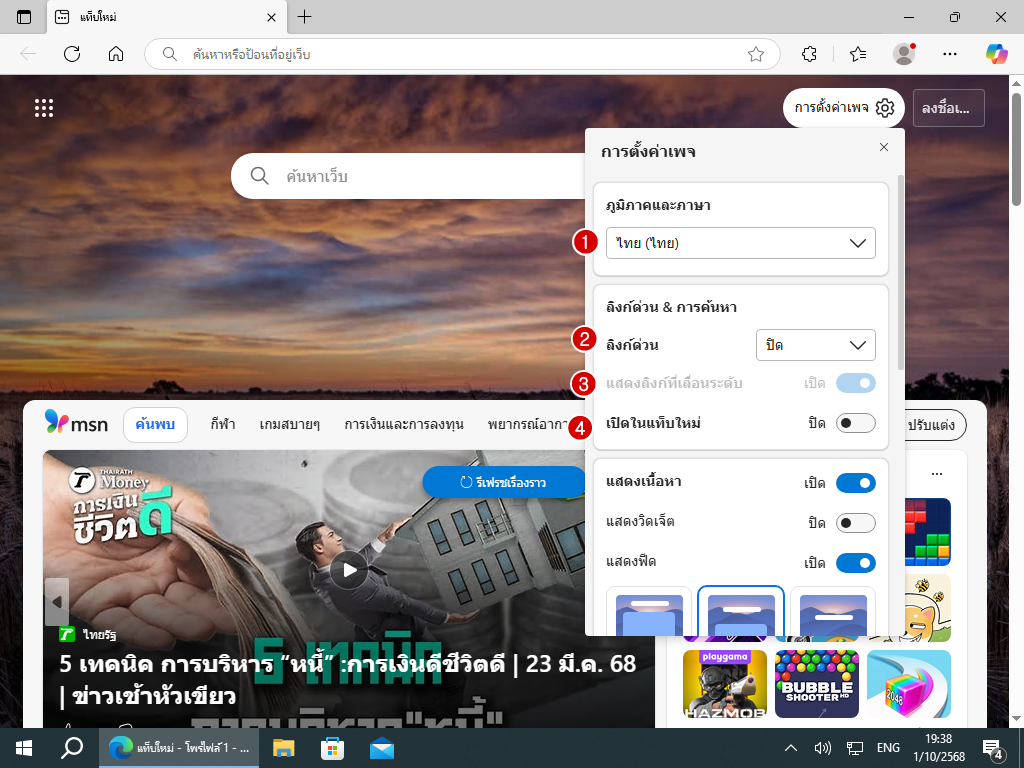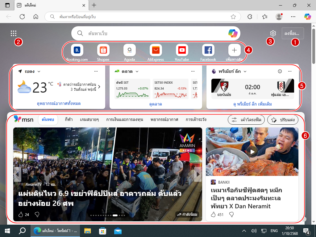 (6) ฟีด : พวกข่าวต่างๆที่ Microsoft หามาแสดง บางทีก็มีโฆษณา